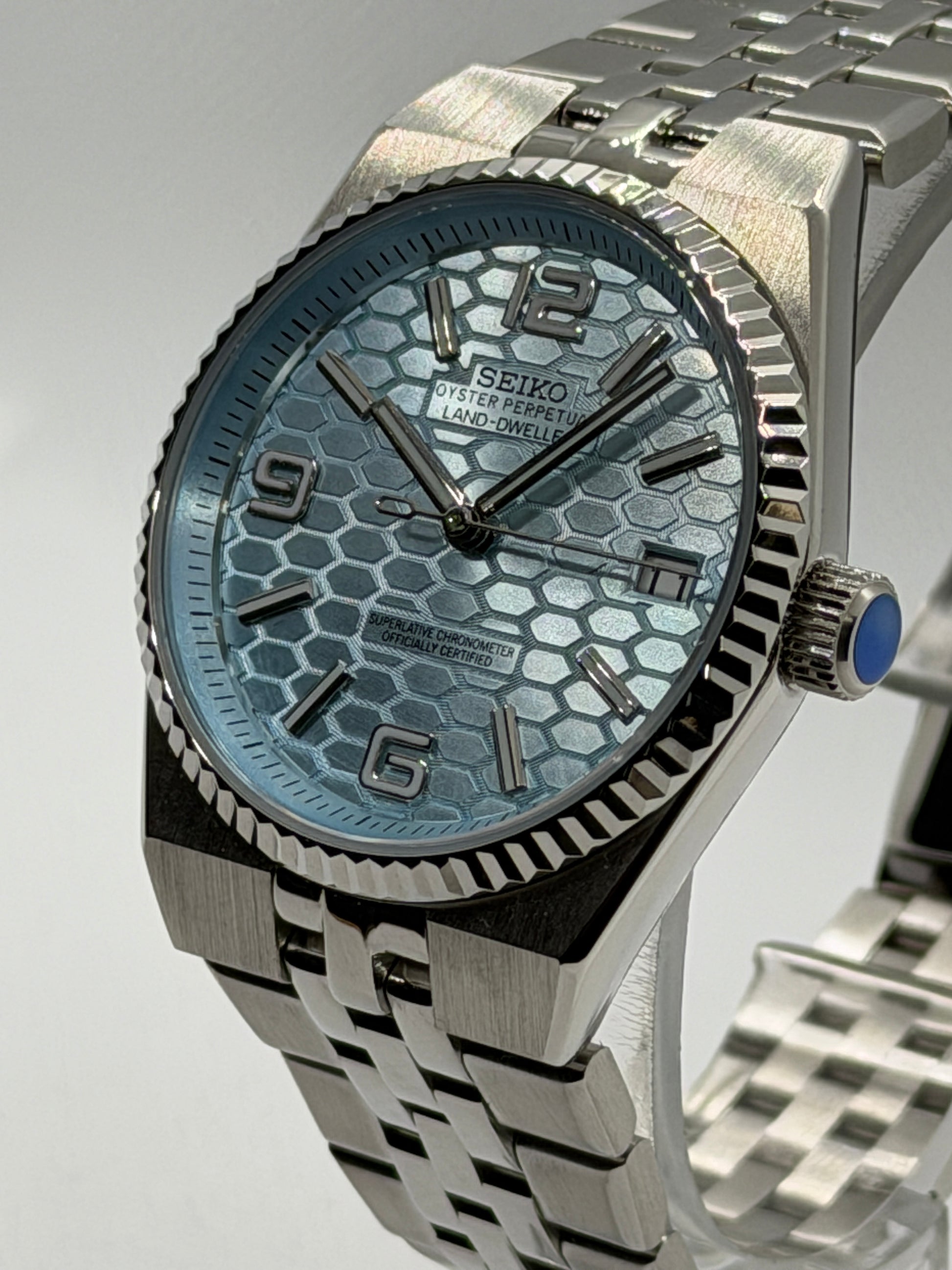 - Blue dial