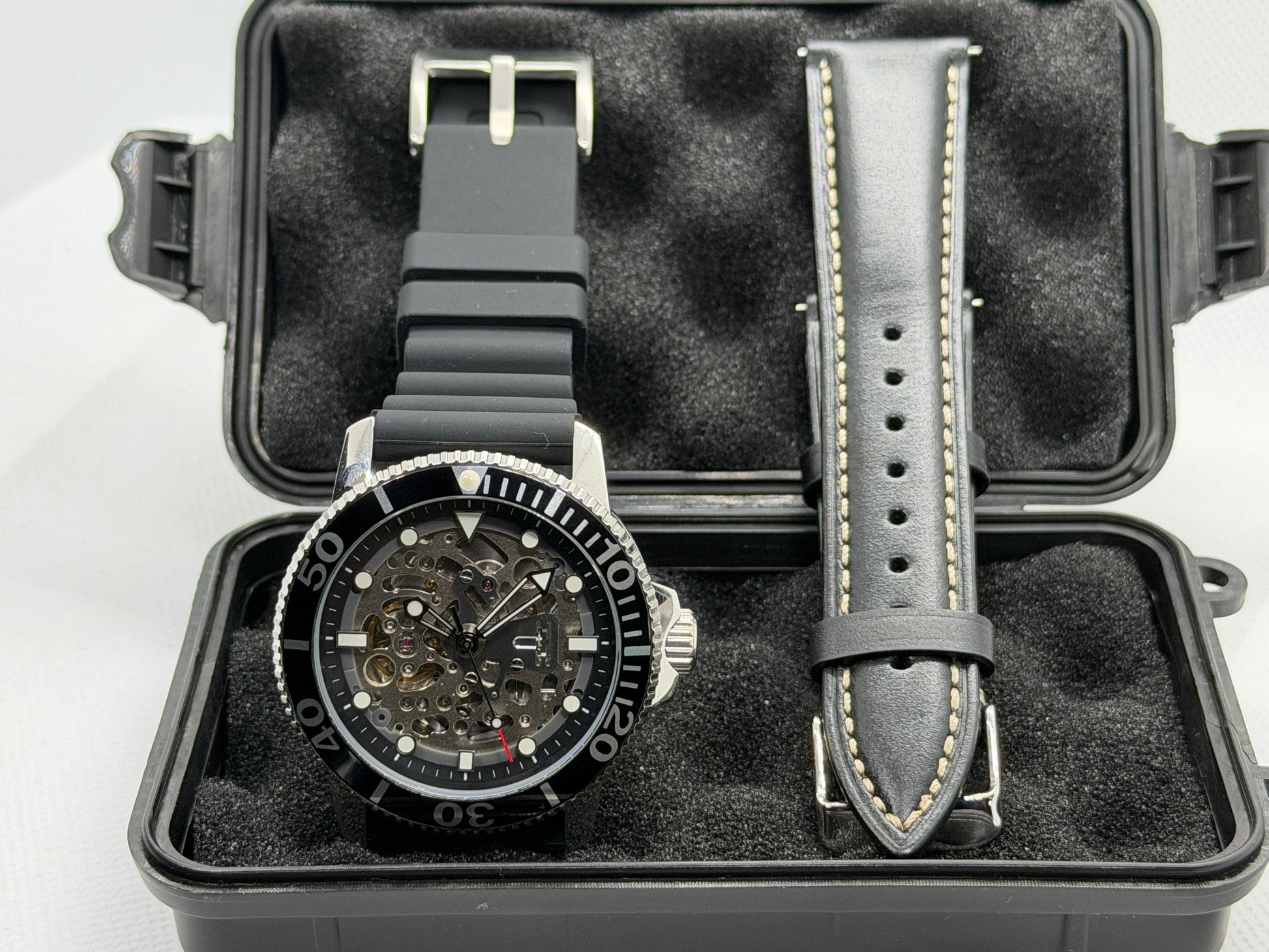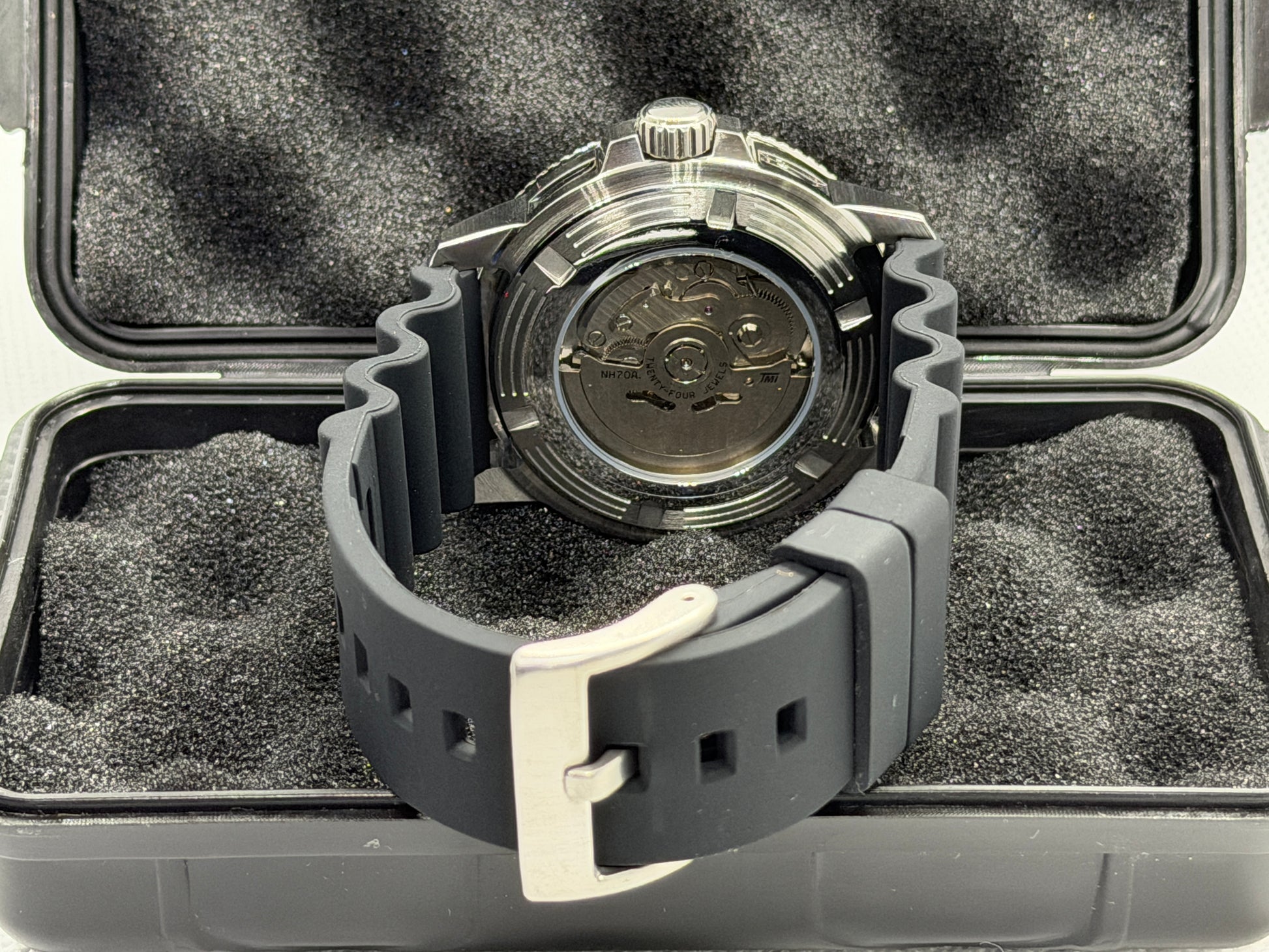 - 22mm black silicone strap